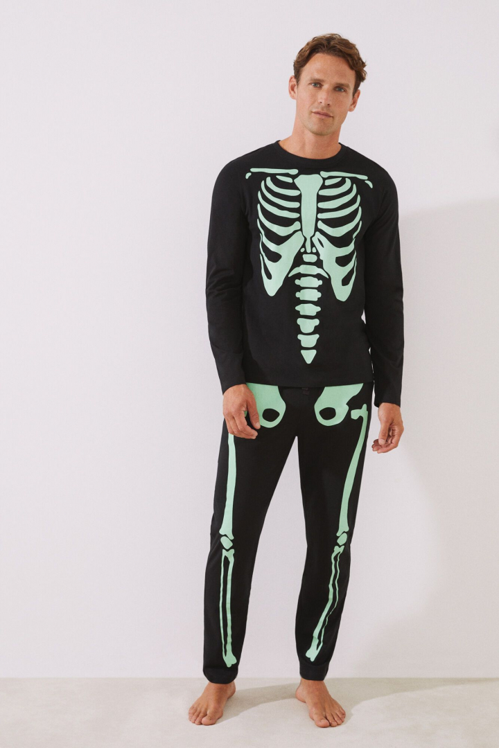 Este pijama de esqueleto está disponible para hombre y mujer, y cuesta 21,99 euros, en versión masculina, y 19,99, en versión femenina. Su precio original era de 36,99 y 32,99, repectivamente.