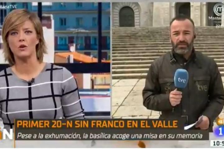 Este miércoles el periodista de TVE Jesús Navarro sumó un nuevo apartado: el de los sustos. María Casado le dio paso en directo desde el plató de La Mañana de la 1 para que informara desde el Valle de los Caídos del primer 20-N sin el dictador Francisco Franco enterrado allí.