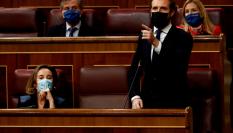 A pesar de que los escaños están aislados con mamparas transparentes para cumplir con las medidas anticovid, las conversaciones entre los diputados no quedan encapsuladas. El portavoz de Cs, César Zafra, se ha pasado la mañana conversando con su compañero de filas. Y el de Podemos, Jacinto Morano, gesticulando. Solo él, de todos los miembros de su grupo, ha levantado el puño izquierdo cuando Rocío Monasterio, de Vox, ha hablado de los “comunistas de Pablo Iglesias”. Y solo él, consciente de que hay que dar vida a los plenos, se ha llevado la mano a la cara, entre murmullos (“Qué cara, qué cara”) cuando ha intervenido Díaz Ayuso.