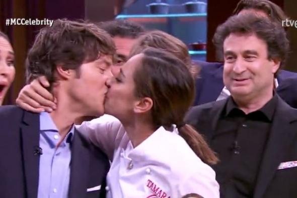 La ganadora de 'MasterChef Celebrity' se lanzó a besar al chef tras conocer su victoria.