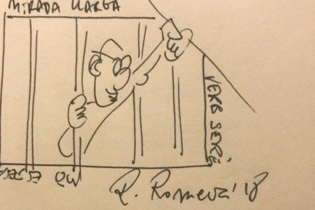 El texto va acompañado de un dibujo de Romeva entre los barrotes de una cárcel con una flor en la mano donde ha escrito expresiones en catalán como "mirada larga', "cabeza alta", "mano tendida" y "verbo sereno".