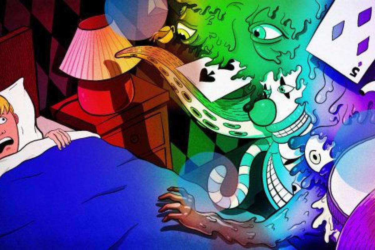 Pero, ¿cómo le dices a un médico extremadamente inteligente y reputado que has estado viendo enormes tostadas voladoras de queso fundido y barajas rojas, negras y blancas, o un payaso de tres metros y un Señor Patata cantando a la tirolesa mientras sobrevuela la habitación en avión?