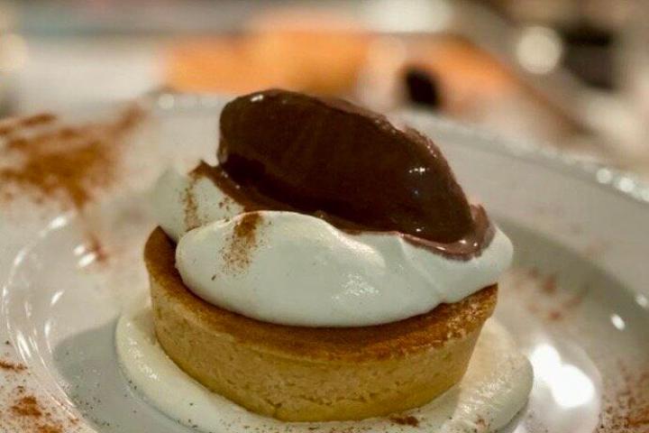 Tarta de queso sin horno con chantilly de mango
