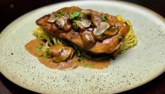 Mezclar todos los ingredientes excepto el cacao en polvo y el aceite de coco hasta que quede suave. Una vez mezclado incorporar el polvo de cacao, al aceite de coco y remover hasta que tome la consistencia de una mouse. Sacar el molde del congelador y verter la mezcla en él. Dejar en la nevera al menos 12 horas y acompañar con tu helado favorito, vegano o no.