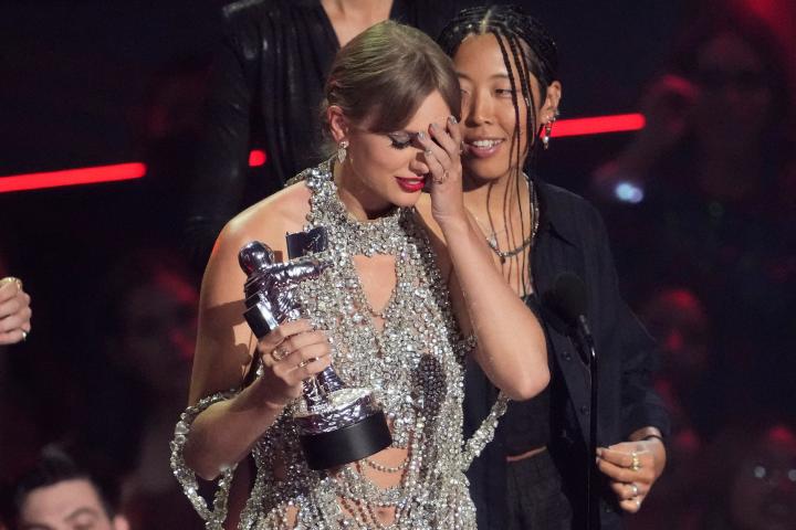 Swift, que acudió con un elegante minivestido de cadenas de pedrería plateada del diseñador Oscar de la Renta, anunció durante la recogida del premio que lanzará un nuevo disco el próximo 21 de octubre que se titulará Midnights, en el que contará trece historias de noches sin dormir a lo largo de su vida.