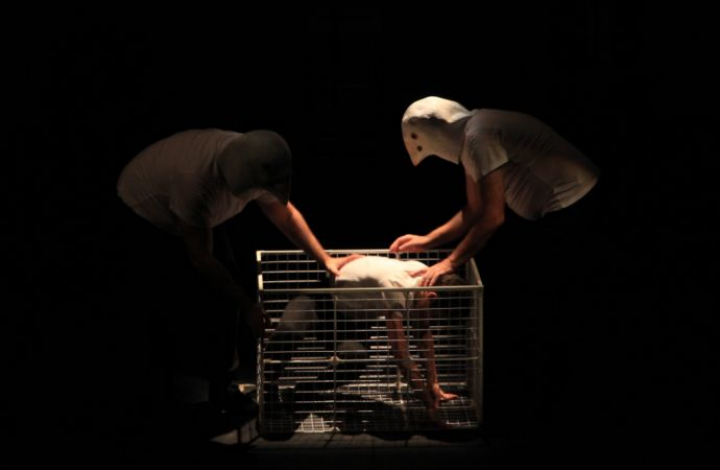 Del agua, omnipresente en la primera, al gas. En segundo lugar, quiero tratar la producción aire de la compañía Threer de José María Esbec, director interesante a quien ya he prestado atención en una entrada anterior en otra obra con vocación ecologista: Pulmones. Tras aquellos “pulmones”, la dramaturgia de Esbec amplía la metáfora hacia el “aire”.