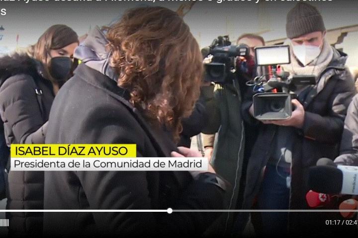 En un rótulo en el programa Ya es mediodía se podía leer: “La presidente de la Comunidad de Madrid, con los tobillos al aire en plena ola de frío”. Y el propio reportero le destacó ese detalle a la política.