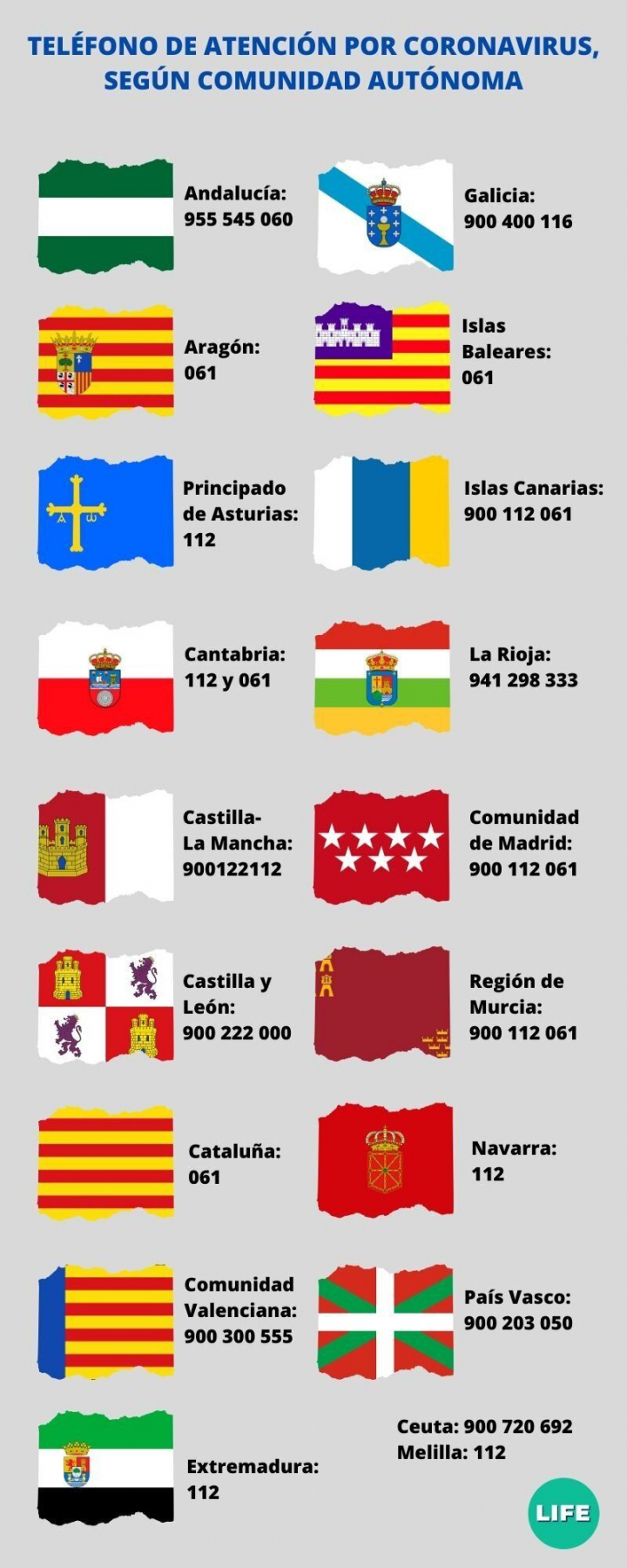 No siempre es el 112 ni el 061, depende de cada comunidad autónoma. Las consejerías de salud han habilitado números especialistas para evitar colapsos y que otros pacientes que necesiten atención urgente por cualquier otro motivo (accidentes, ictus, infartos...) puedan tener problemas para recibir atención inmediata.