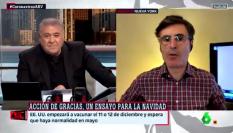 “Un abrazo para Josep, cuídate Julio. Ahí está, míralo, detrás de ti. Nos saluda y todo. Si es que ve una pantalla, ve una cámara y es que...”. ha comentado en tono de humor Ferreras.