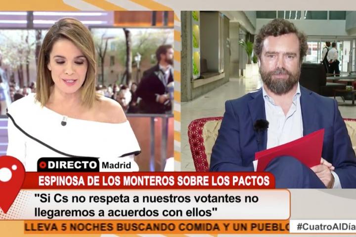 Después del análisis, Chaparro y de los Monteros han recordado un rifirrafe que tuvieron hace unos meses en un acto de Vox, en el que una reportera del programa quiso preguntar al político y este le espetó un: “Cuatro, no moleste”.