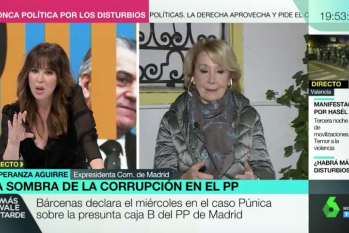 Esperanza Aguirre y Mamen Mendizábal han tenido un fuerte encontronazo entre jueves en Más Vale Tarde, el programa vespertino de laSexta.