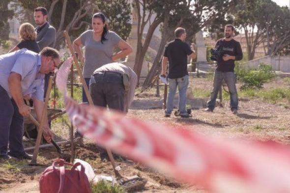 Los expertos han localizado una caja vacía, en la que debía estar un crío nacido en 1976. La madre lleva mes y medio al pie de la fosa buscando respuestas.