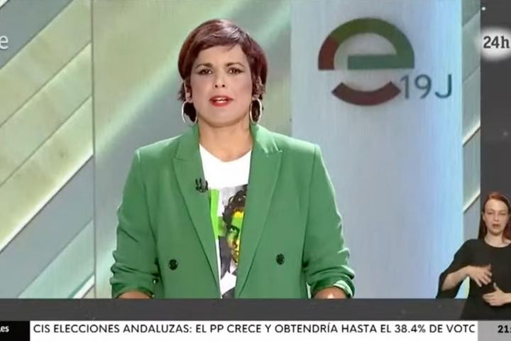 Teresa Rodríguez llega al último debate en Canal Sur con una camiseta que causa sensación