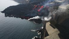La evolución de las coladas se ha mantenido estable en las últimas horas y sus frentes no han experimentado movimientos, a excepción de la que alcanzó el mar en la playa de Los Guirres durante la madrugada del miércoles dando comienzo a un nuevo delta lávico que se superpone por el norte al anterior.