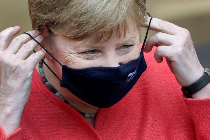 Angela Merkel se ajusta su mascarilla, el pasado 3 de julio, durante una comparecencia parlamentaria en Berlín.Michael Sohn / ASSOCIATED PRESS