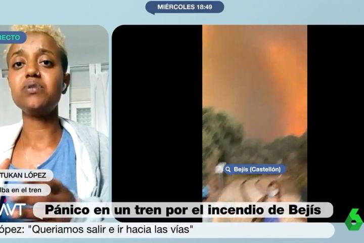 Los pasajeros del media distancia que circulaba por la zona de Bejís en Castellón y que se vieron envueltos por las llamas del incendio descontrolado vivieron verdaderos momentos de pánico y se temieron lo peor. Birtukan López, una de las pasajeras del tren, relata lo que ha calificado como el “peor día de sus vidas” y lamenta que haya personas que viajaban junto a ella que han sufrido heridas graves.