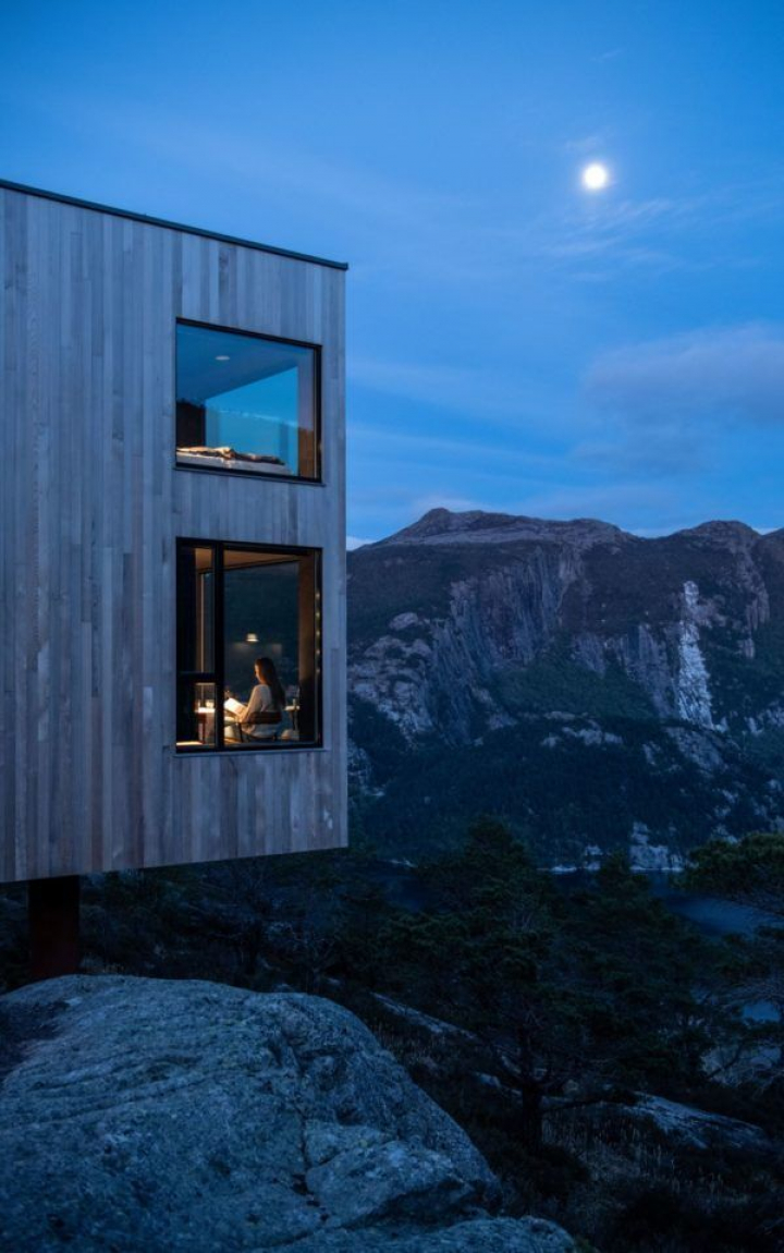 Sus compactas edificaciones de interiores cuidados, cuentan con dos dormitorios, una cocina Vipp que se abre al comedor con vistas sobre Lysefjord y un baño completamente equipado. Y ya han sido clasificados por la revista Forbes como uno de los 25 lugares en los que dormir más sorprendentes del mundo.