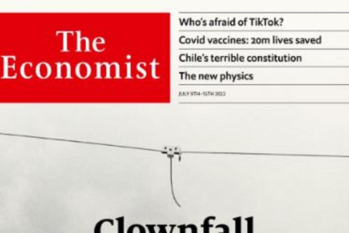 En el titular se puede leer “Clownfall”, un juego de palabras que que mezcla ‘clown’ (payaso) con ‘downfall’ (precipitación, caída, ruina). Y, justo debajo: “Gran Bretaña después de Boris”.