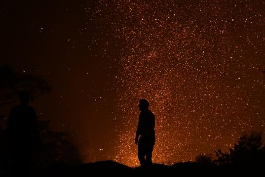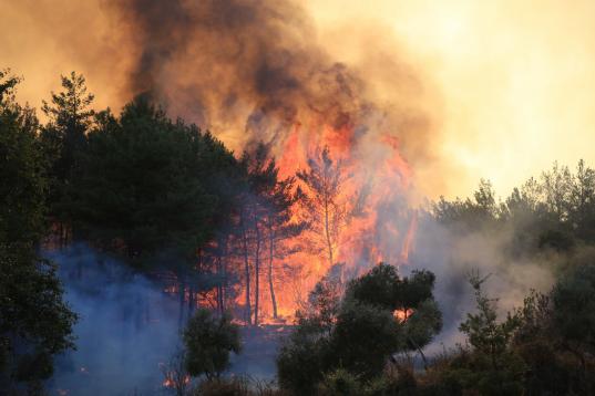 “Crisis climática mundial: inevitable, sin precedentes e irreversible”, se puede leer en el centro de la página. Sobre estas palabras emerge la impactante instantánea tomada por el fotógrafo Konstantinos Tsakalidis en el pueblo de Gouves, en la isla griega de Eubea.