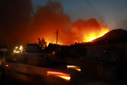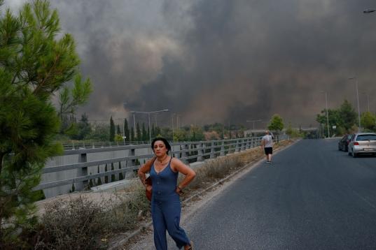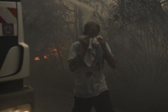 En ella, una mujer muestra su total desolación ante el avance del fuego que está asolando esta zona de Grecia. En esta isla, la segunda más grande del país, las llamas han rodeado varios pueblos y las evacuaciones continúan a la orden del día.