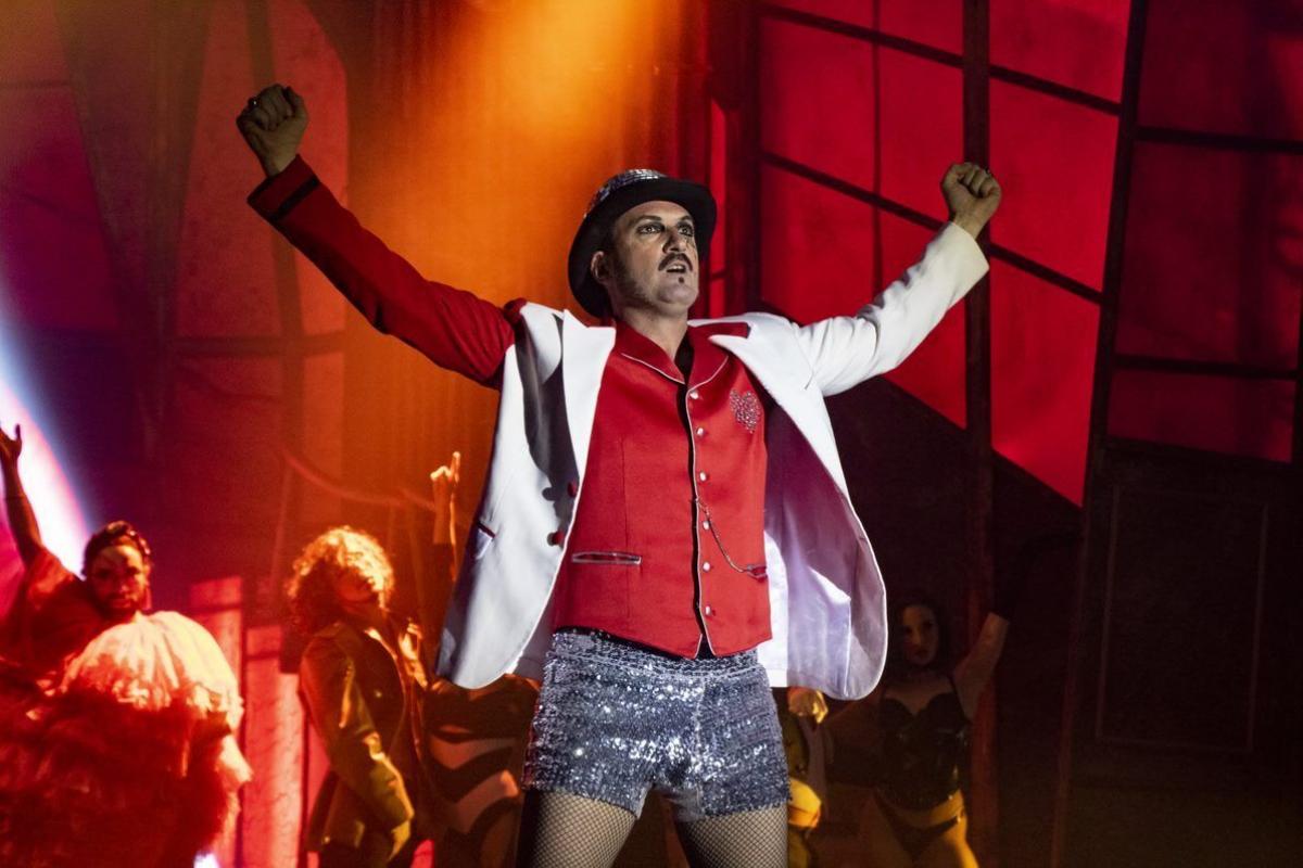 Propuesta a la que no le falta su maestro de ceremonias o MC, que el día del estreno oficial y para VIP fue Álex O’Dogherty. Showman que ya lo había hecho antes y durante mucho tiempo. Que cose con sus textos, su labia y su presencia los espacios entre los números de baile, el circo y las canciones. Y que también tiene su momento de gloria sentado en un retrete en el que retrata a políticos de todos los colores, leyendo las contradictorias declaraciones que han dejado en la hemeroteca. Un divertido monólogo que podría aparecer en el Club de la Comedia, pero tan bien servido, puesto en escena, que parece otra cosa.