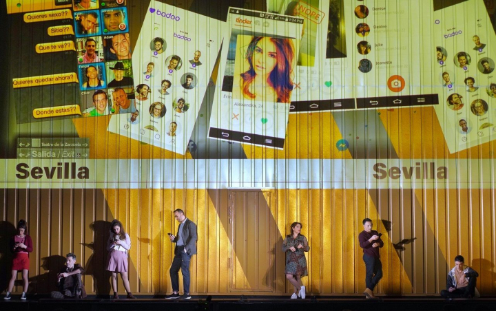 Pues bien, en ese mundo de apps, se embarcan esos dos amantes de Teruel (o vaya usted a saber), tan tonto ella como él, cantando al amor romántico. Un mundo virtual en el que hay mujeres, hombres y viceversas. Un juego en el que hay que recordar a los bandidos que “el sí es sí” y “el no es no”. En el que se repite varias veces el chiste de que los personajes, y por ende el montaje, no son LGTBI+QSRTJHKfóbicos pero, por si no queda claro, ellos son heteros y muy heteros. Una actitud muy típica de esta sociedad en la que vivimos sobre la que probablemente han querido ironizar, pero que desde la butaca se vuelve en su contra.
