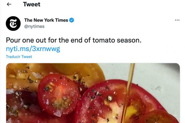 Pocas veces ha tenido tanta repercusión en Twitter The New York Times con una receta. El prestigioso medio estadounidense ha publicado en la red social del pájaro azul lo que han llamado “pan con tomate”.