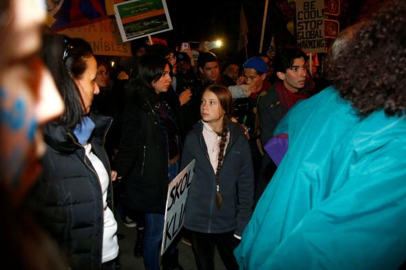 La joven activista sueca de 16 años, Greta Thunberg, ha abandonado, entre aplausos, la Marcha por el Clima en un vehículo eléctrico, por recomendación de las fuerzas de seguridad, ante la imposibilidad de avanzar a pie debido a la masiva afluencia de personas.