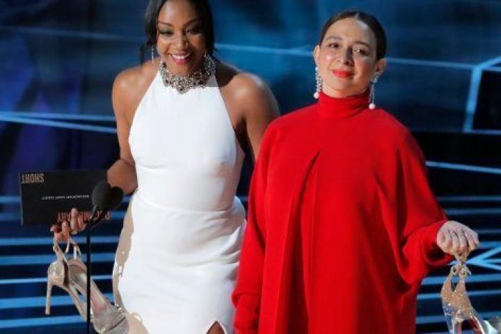 Fue su primera reivindicación. Las dos intérpretes aprovecharon que iban a entregar dos Oscar —mejor corto y mejor corto documental— para llenar su intervención de mensajes sutiles.