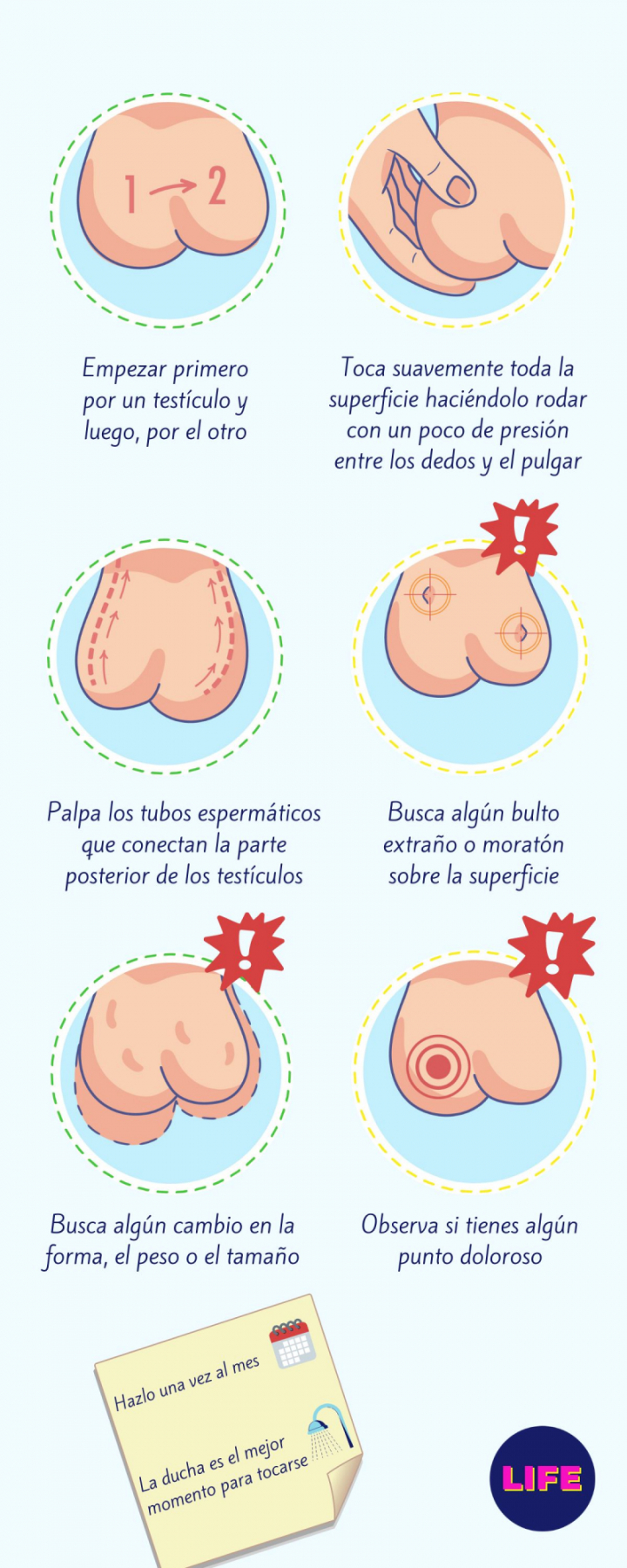 “No hay una recomendación en cuanto a tiempos, pero estaría bien hacerlo una vez al mes a partir de los 18 o 20 años. Se aprovecha en la ducha porque con el agua se retrae el escroto es más fácil tocarlo que cuando estamos haciendo cualquier cosa”, señala. El experto recuerda que no son iguales uno y otro, no tienen que ser del mismo tamaño y que esto no debería de ser alarmante.