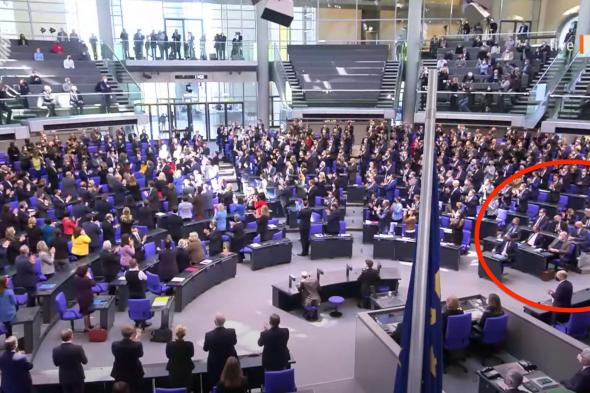 Pero antes de su intervención, todo el Parlamento se ha puesto en pie para ovacionar al embajador de Ucrania en Alemania, Andrij Melnyk, que ha respondido al aplauso juntando sus manos y agradeciéndolo, muy emocionado.