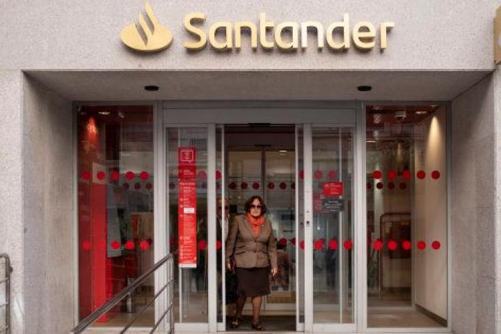 Una clienta sale de una oficina de Santander en Salamanca.SOPA Images via Getty Images