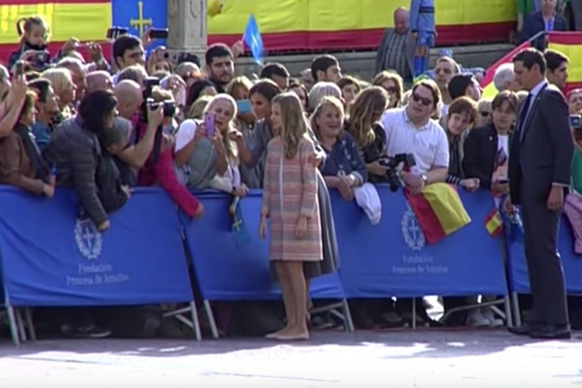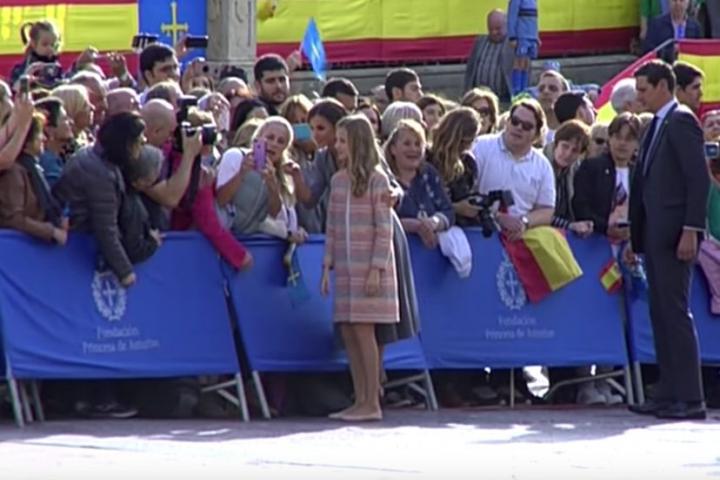Un momento de esos saludos ha dejado una imagen curiosa. Mientras Letizia y Leonor daban la mano a diferentes personas, una mujer les paró para pedirles un selfie.
