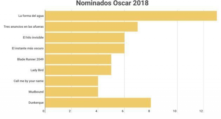 La cinta de Del Toro compite con otros de los grandes títulos de la temporada para hacerse con el premio a Mejor película: Call me by your name, Déjame salir, Lady Bird, Los archivos del Pentágono, Dunkerque, El instante más oscuro, El hilo invisible y Tres anuncios en las afueras. Estas cuatro la siguen en la lista como las más nominadas. La película de Christopher Nolan cuenta con ocho candidaturas, frente a las siete Tres anuncios y a las seis de El hilo invisible y El instante más oscuro.