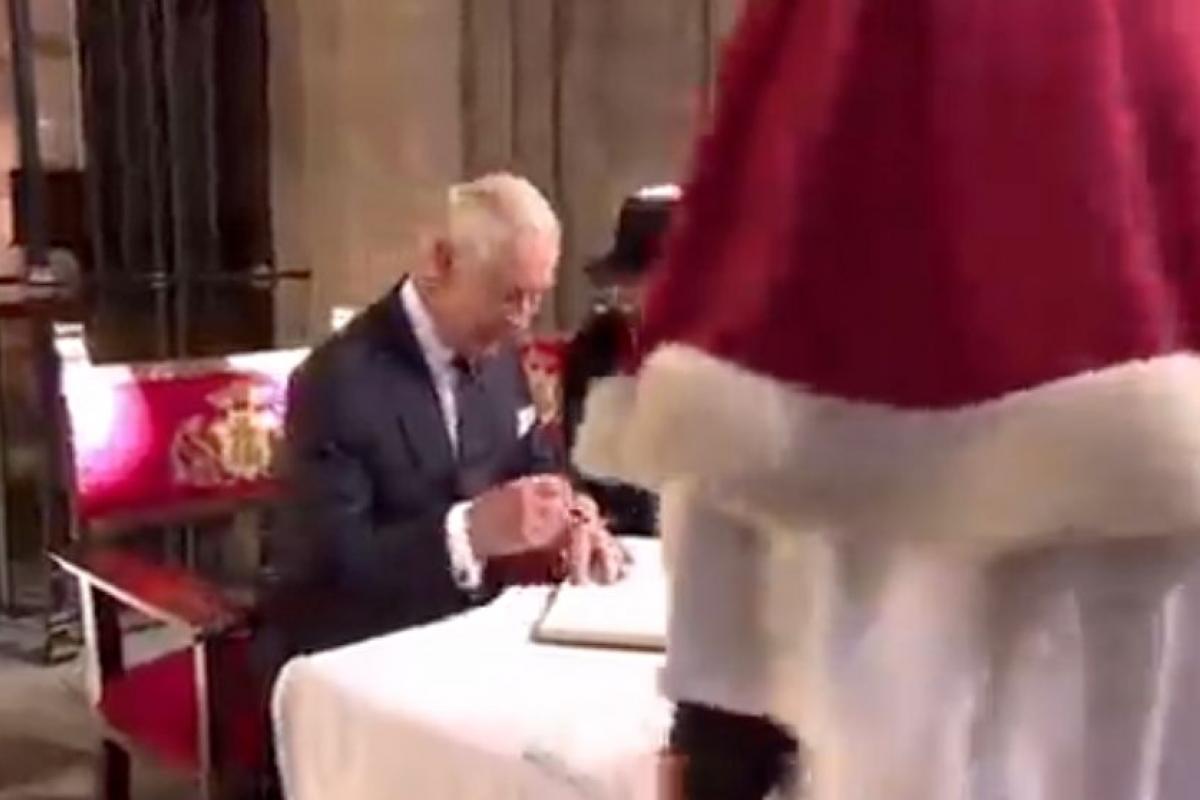 El Rey Carlos III y la Reina Camila firman el Libro de Visitas de la Catedral de Llandaff, y parece que esta vez, no hay polémica con la pluma. pic.twitter.com/zHTyhOdaSF