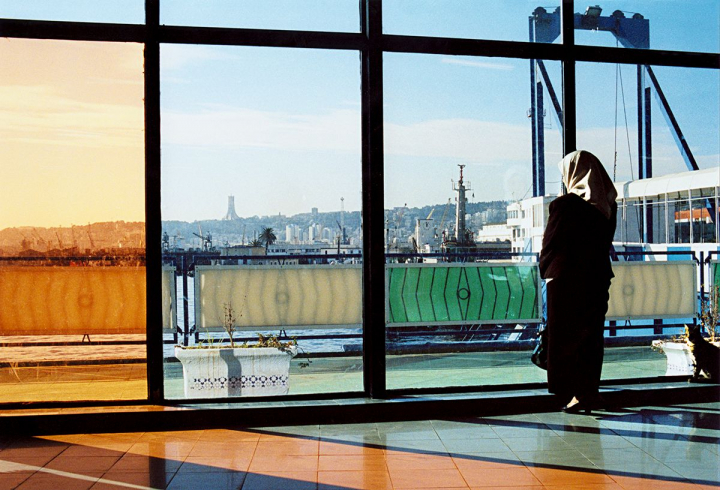 Con ella nos imbuimos del aire del Día de la Paz de Hiroshima, tras el terremoto y el tsunami que asoló Japón en 2011. Con Yoneda observamos a una mujer mirando al puerto a través de un ventanal policromático. Gracias a su mirada nos percatamos de un gato que observa directamente a la cámara y se muestra esquivo, mientras las plantas se mustian por el sol o por el relente (‘Diálogo con Albert Camus Esperando un barco. Puerto de Argel. 2017’).