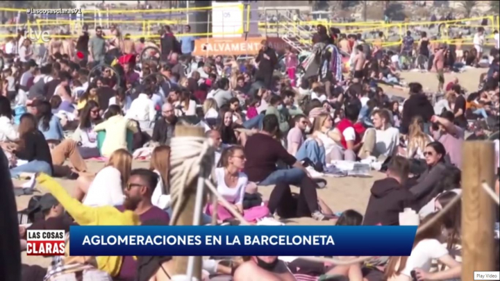 Nada más terminar con una entrevista al doctor Alberto Infante, Cintora describió la situación en la capital catalana: “Vean también ustedes estas imágenes, que nos llegan de la playa de la Barceloneta en mitad de la pandemia. Imágenes de turistas y playas donde, evidentemente, no hay distancia de seguridad y son imágenes para la polémica”.