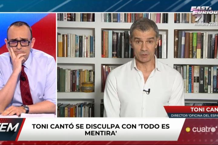 Toni Cantó ha estado este jueves en el plató de Todo es mentira para hablar de su libro. El director de la Oficina del Español ha respondido a las preguntas de Risto Mejide sobre su inclinación política y sobre su papel al frente de este organismo que muchos califican de “chiringuito”.