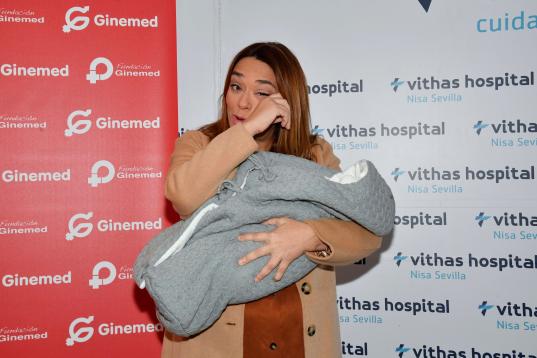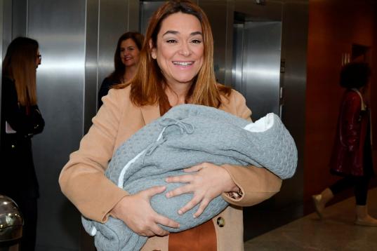 Toñi Moreno, presentadora del programa Mujeres y Hombres y Viceversa de Cuatro, ha salido este sábado del Hospital Vithas Nisa Sevilla con su hija Lola, a la que dio a luz este martes.