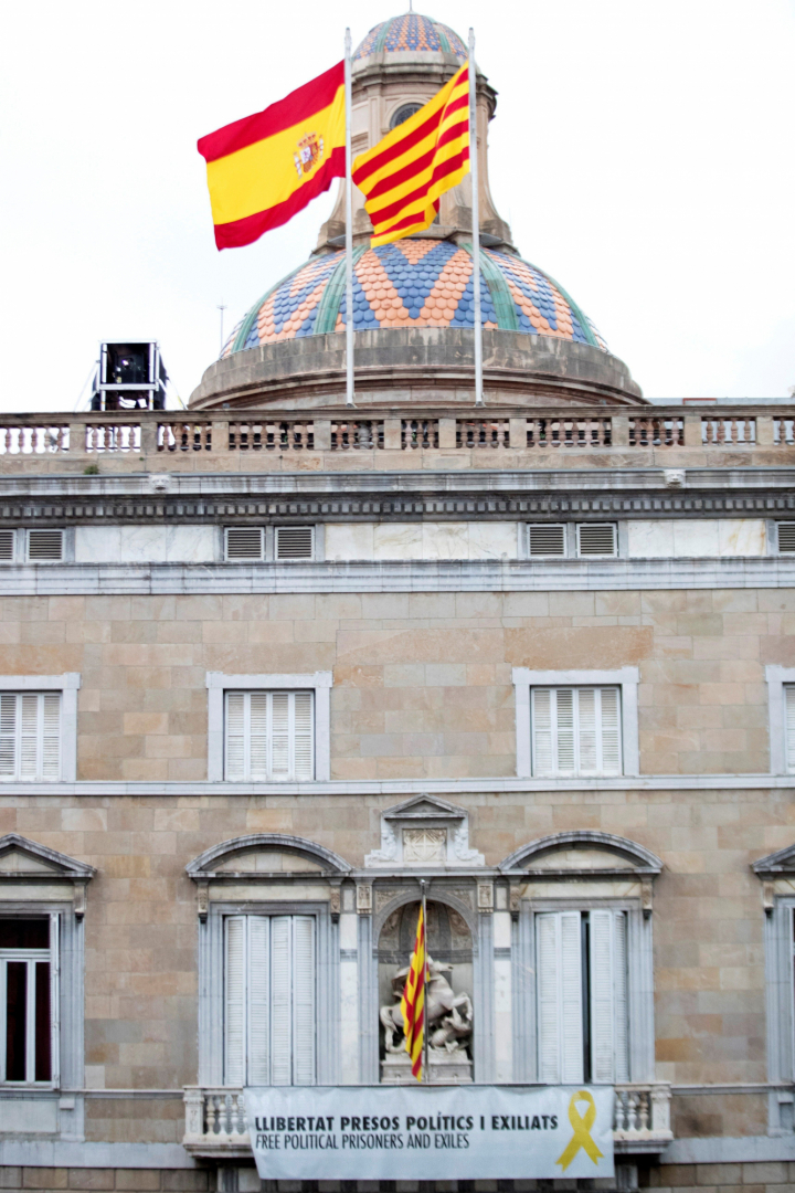 Los abogados de la Generalitat defienden que la pancarta, es “una manifestación política” y piden al TSJC que suspenda la orden hasta que resuelva el recurso que han presentado este miércoles. Mientras, el cartel con el lazo amarillo que pide la libertad de los políticos catalanes en prisión preventiva se mantiene en la fachada.