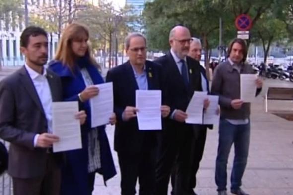 Torra y el resto de dirigentes han llegado a la Ciudad de la Justicia poco después de las 8 horas y han esperado en el exterior a la apertura del juzgado a las 9.00 horas para presentar la denuncia de autoinculpación.