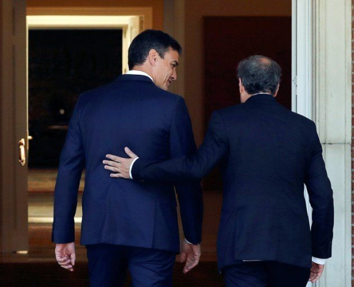 El propio Torra ha explicado esta tarde en la delegación de la Generalitat en Madrid su versión de la reunión de más de dos horas y media en el Palacio de La Moncloa con el presidente del Gobierno, en la que han acordado reactivar la comisión bilateral pero han chocado sobre la autodeterminación.