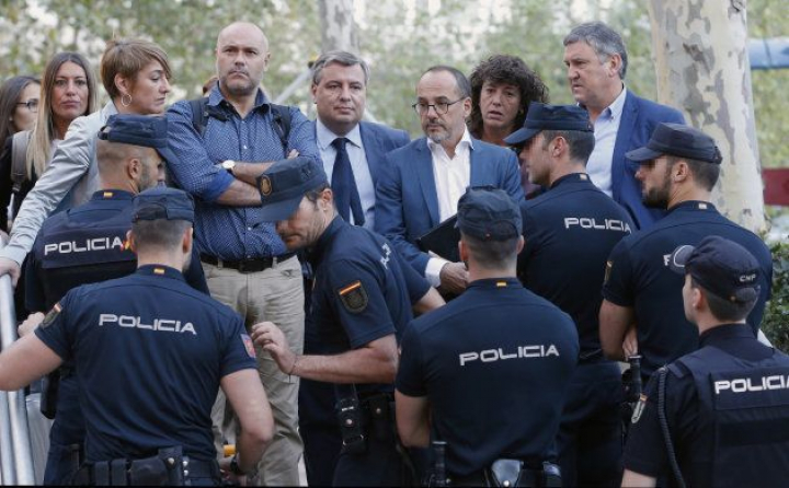 "De manera sorprendente nos han dicho que no les podemos acompañar, que nos teníamos que situar detrás de estas vallas", se ha quejado el diputado catalán, para quien se ha vulnerado su derecho a acompañar a los investigados. Ha insistido en que la imputación es "injusta" y ha recalcado que lo que ocurrió el 20 de septiembre fue un "allanamiento" de las oficinas gubernamentales por la policía.