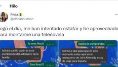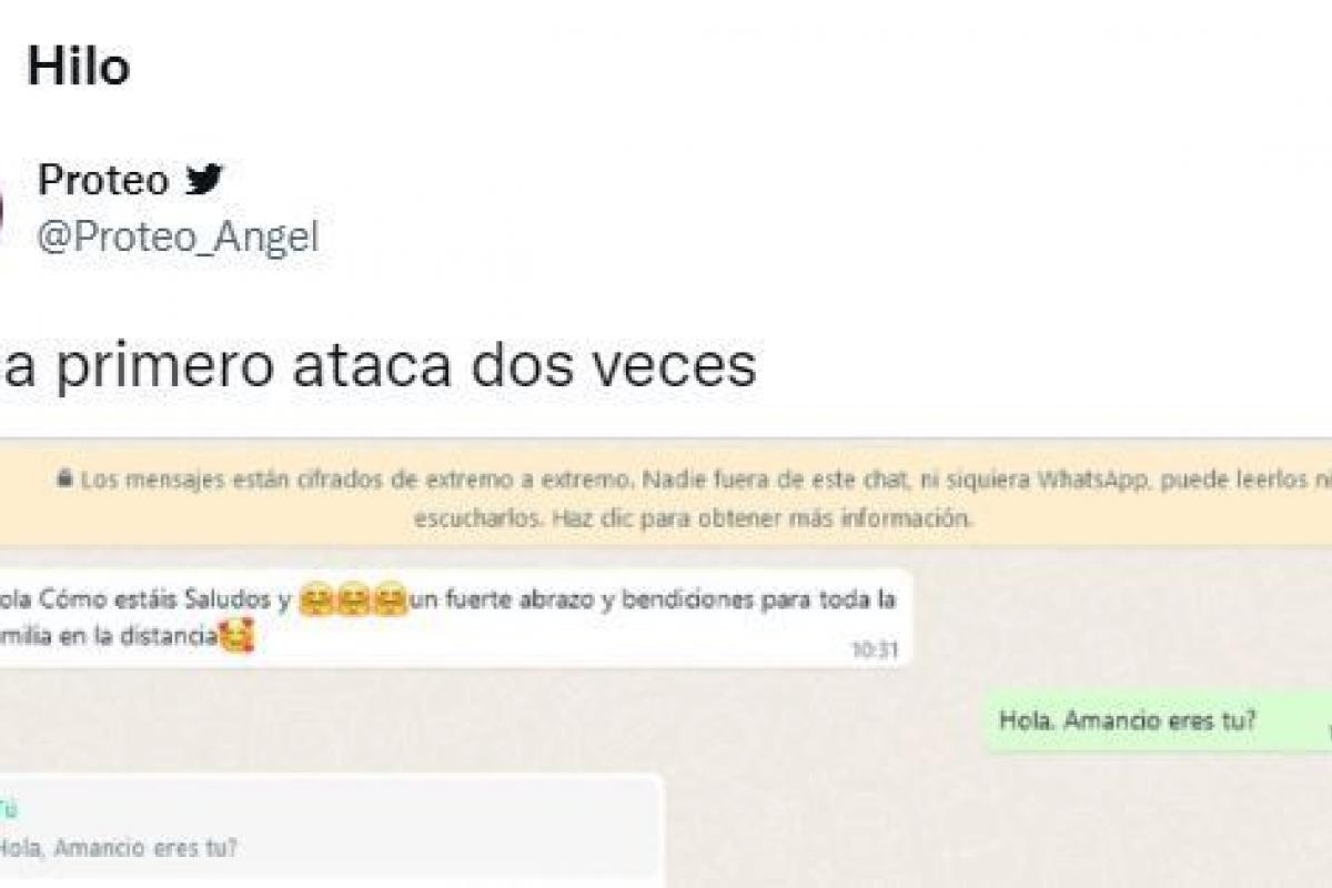 En unos pantallazos que ha subido a Twitter se ve como el estafador le saluda: “Hola, cómo estáis y saludos. Un fuerte abrazo y bendiciones para la familia en la distancia”.