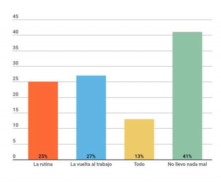 Lo peor de volver es recuperar la rutina y reincorporarse al trabajo. Seis de cada cuatro encuestados están en ese punto: llevan mal una cosa, la otra o las dos.