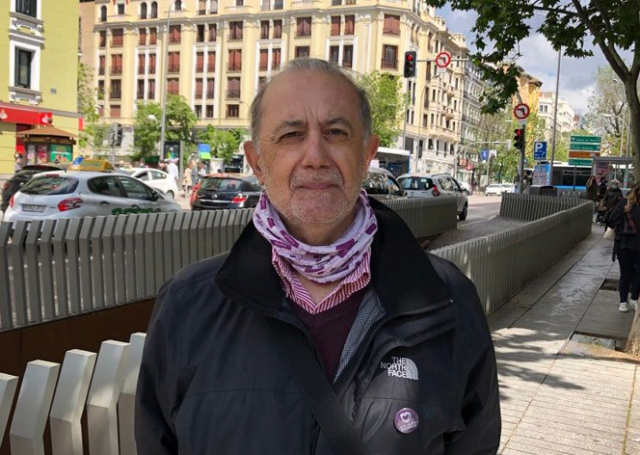 “Me considero una persona afortunada con una pensión alta, de unos 2.200 euros. Con mi pareja, los dos compartiendo, más o menos podemos permitirnos vivir al nivel que exige este barrio. Todos dicen que vamos a desaparecer en Salamanca, que es una misión imposible, pero bueno… estamos demostrando con hechos desde que hemos llegado al Gobierno, que podemos ganar y gobernar en la Comunidad de Madrid también. Si la izquierda se moviliza con una coalición como en el Gobierno se puede. Yo tengo esperanzas. Lo único que en este barrio pues te acusan de rojo y populista. Yo les lleno el barrio de pegatinas y sobres de Podemos en los buzones”, dice este excontable de la Asociación de Envasadores de Aceite, donde trabajó cuatro décadas.