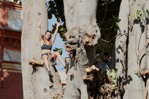 Tres personas se suben al ficus de Triana (Sevilla) para evitar su tala