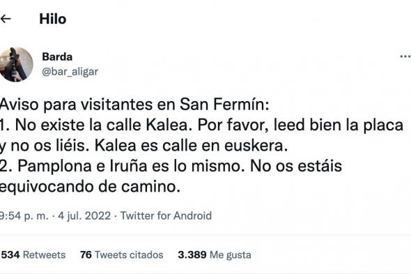 Triunfa en Twitter con sus 10 consejos para los visitantes en San Fermín