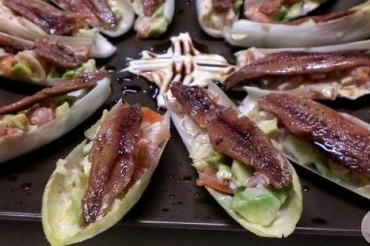 También llevan anchoas, tomate y queso de untar. Puedes ver la receta completa en Cookpad.