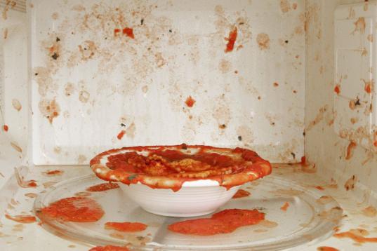 En general, los residuos que se acumulan en el microondas son restos de alimentos que salpican la superficie al ser calentados, por no estar correctamente cubiertos con tapas o plásticos aptos para microondas.